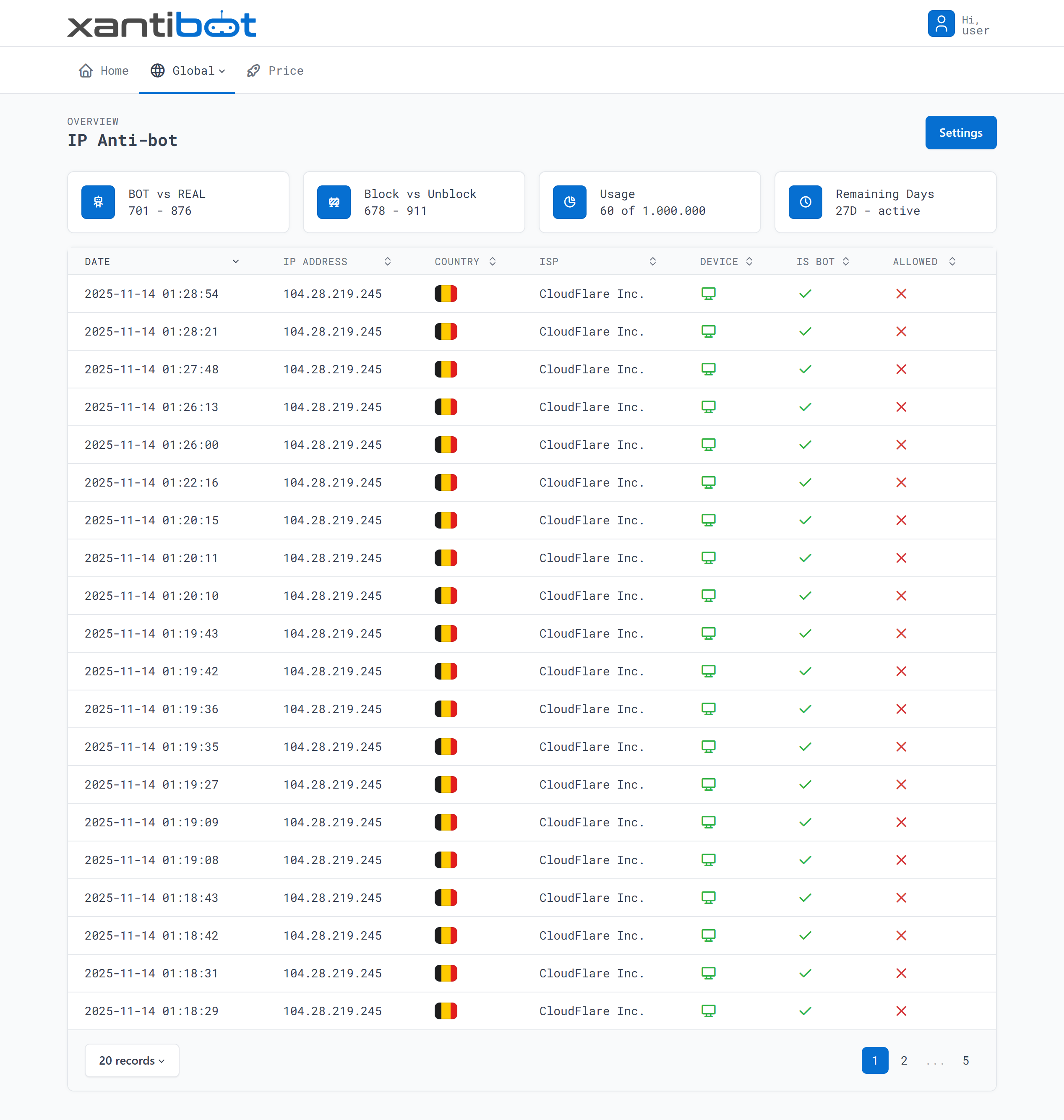 Xantibot validates every IP with detailed reputation, behavioral, and geolocation analytics to filter malicious automation without disrupting genuine users.